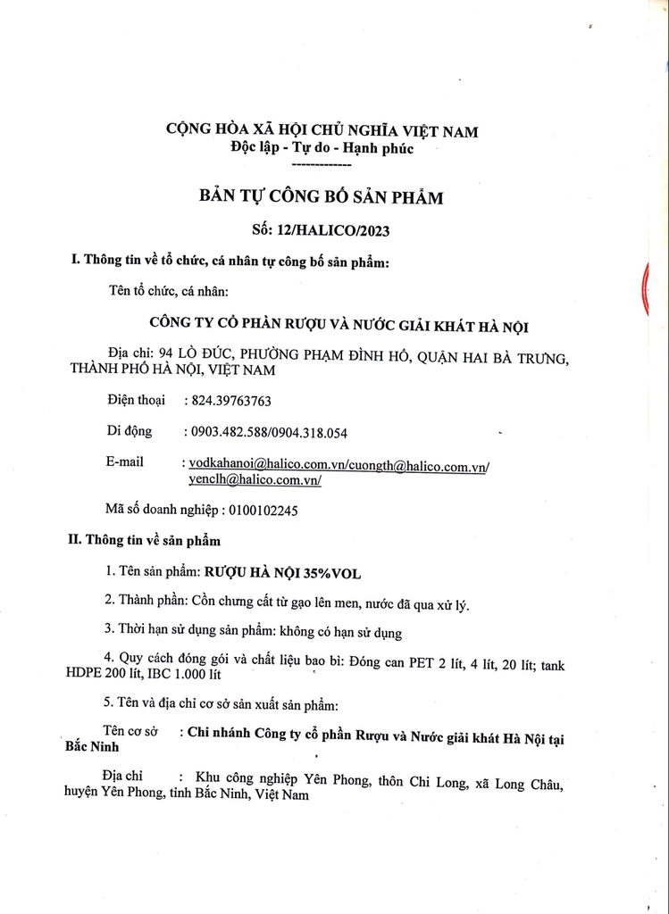 Sản phẩm tự hào gắn liền với tên gọi của Thủ Đô và được người tiêu dùng Việt rất ưa thích. Sản phẩm được lên men từ gạo kết hợp phương pháp truyền thống và hiện đại tạo ra dòng rượu tinh sạch, đậm đà. Sản phẩm được đóng trong Can PET an toàn thực phẩm có dung tích lớn phù hợp với thói quen tiêu dùng của người Việt Nam, sử dụng trong các bữa tiệc lớn của gia đình, hội trường, sự kiện đông người, dùng để ngâm hoa quả, dược liệu quý…